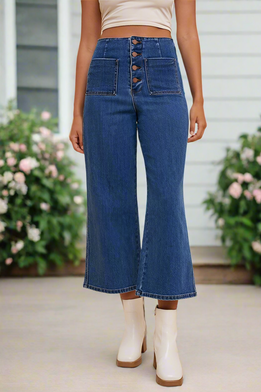 Button fly high waist jeans are a timeless and flattering choice for a retro-inspired look. The high waist design elongates the legs and cinches the waist for a feminine silhouette. The button fly closure adds a vintage touch to the jeans, giving them a classic and sophisticated appeal. These jeans are versatile and can be styled in various ways - pair them with a crop top and heels for a chic and modern outfit, or with a tucked-in blouse and loafers for a more polished look.