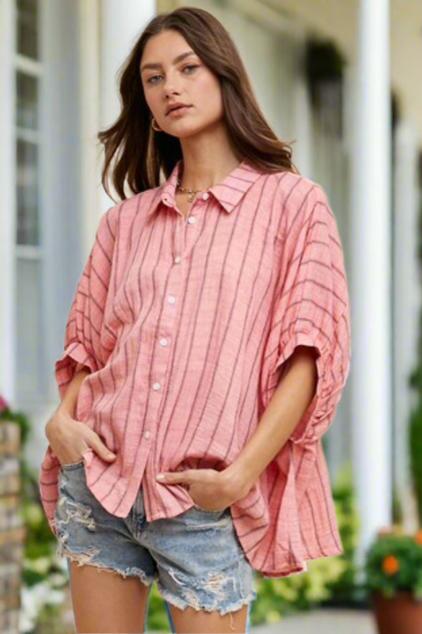 Annie Wear Striped Button Up Half Sleeve Top