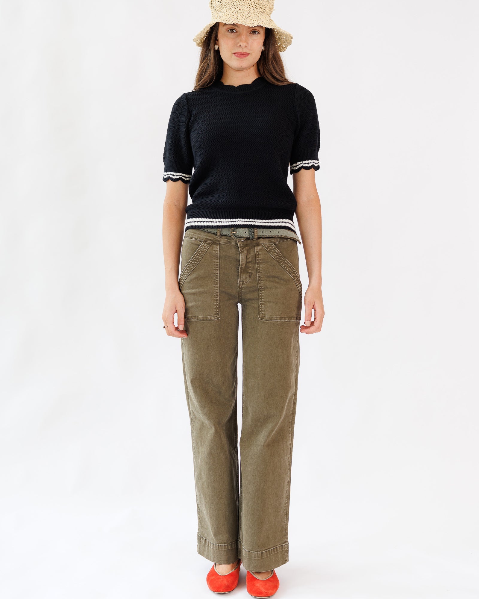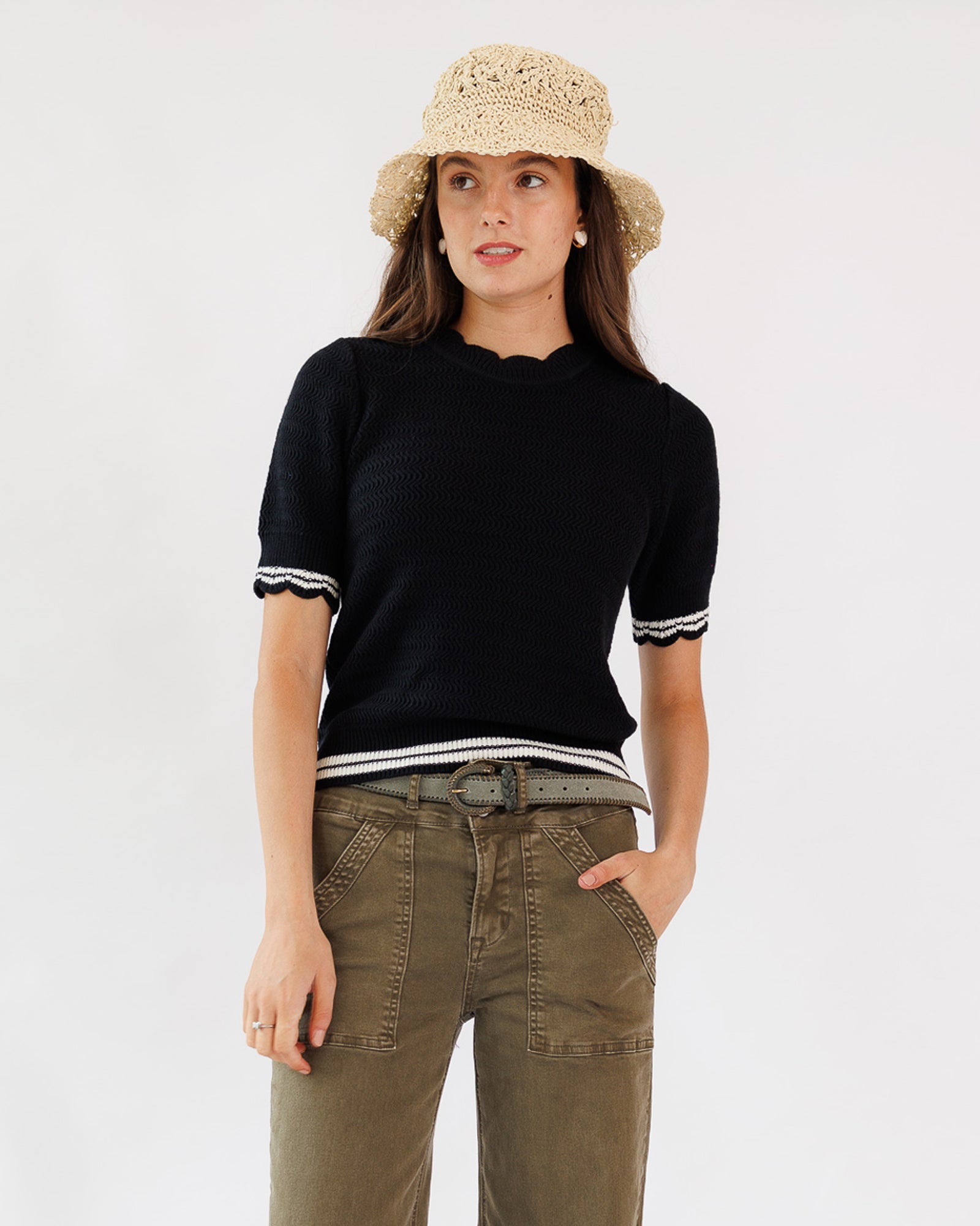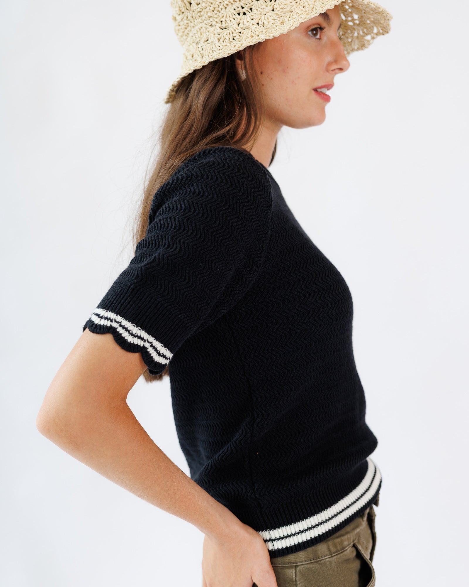 - Scalloped neckline and sleeves
