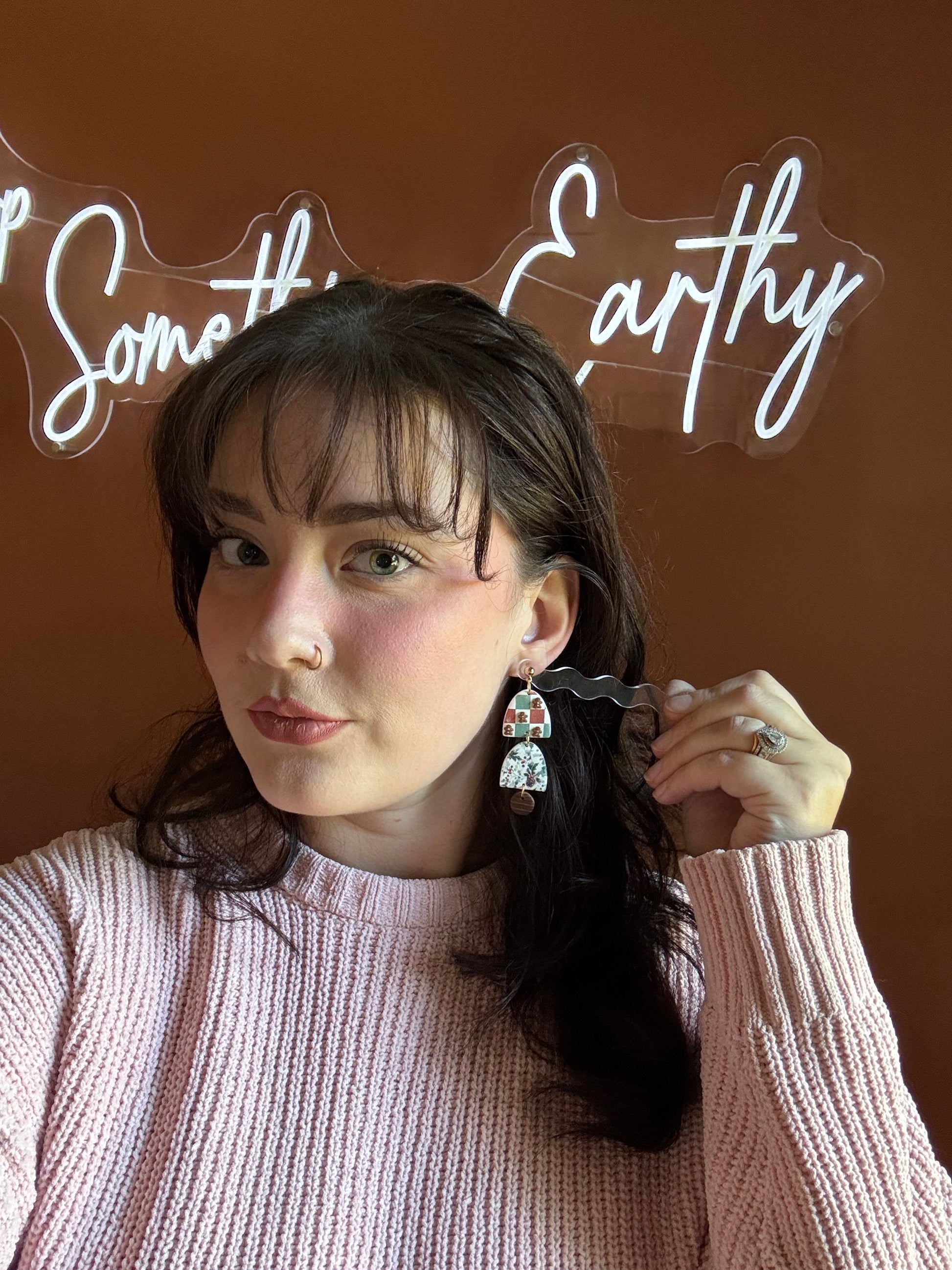 Earrings are made of polymer clay and hardware is 14k gold plated - nickel free. Each piece is rolled, cut, baked, sanded and assembled by hand, so sizes and custom-mixed colors will vary per piece. Due to the handmade nature of my pieces, slight imperfections are inevitable. Every piece is truly one of a kind.