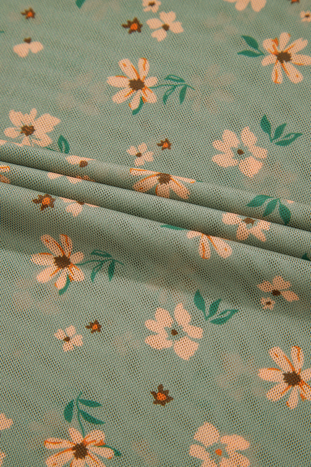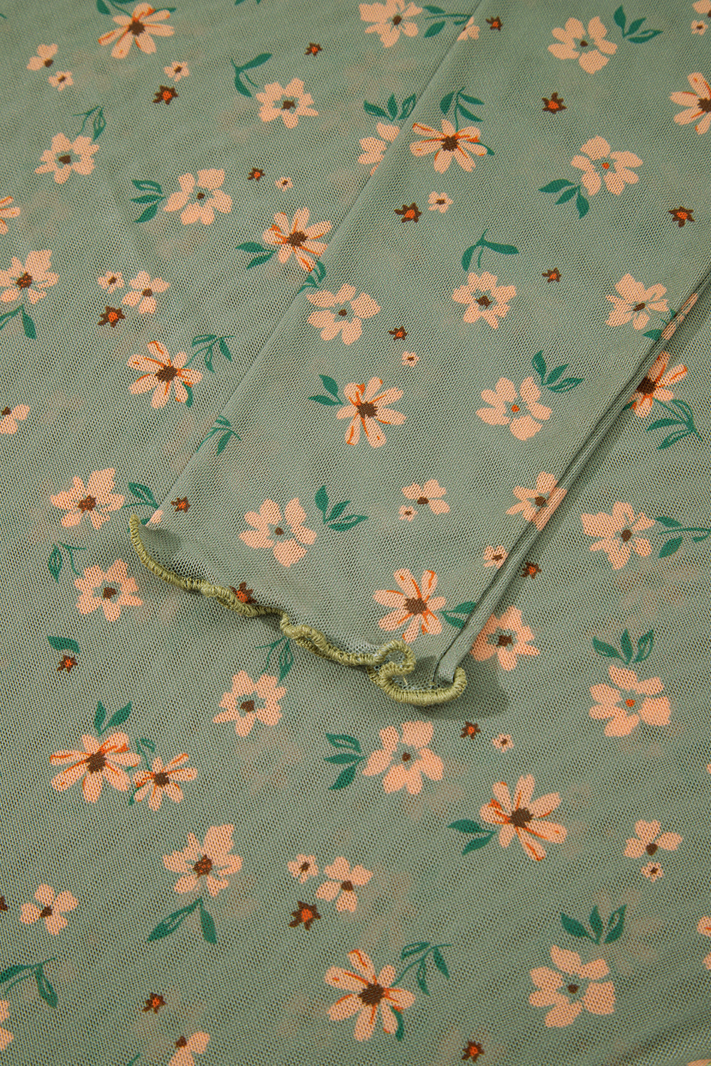Embrace southern charm with this playful mesh top, adorned with tiny vintage prints. Its sheer fabric and slim fit create a flirty silhouette, while the delicate lettuce trim adds a sweet, whimsical touch. Perfect for those who love to mix classic style with a dash of fun.