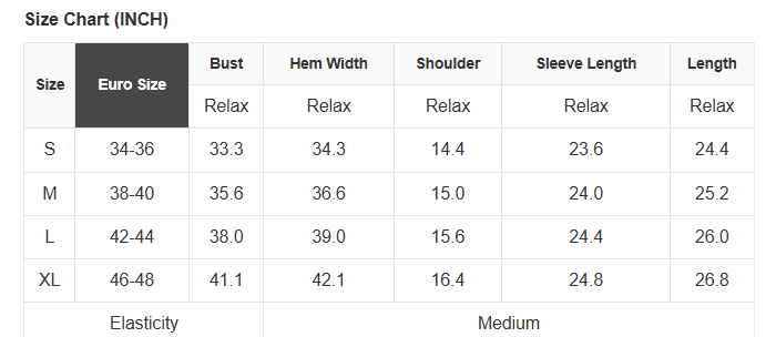 See size chart for approximate measurements.