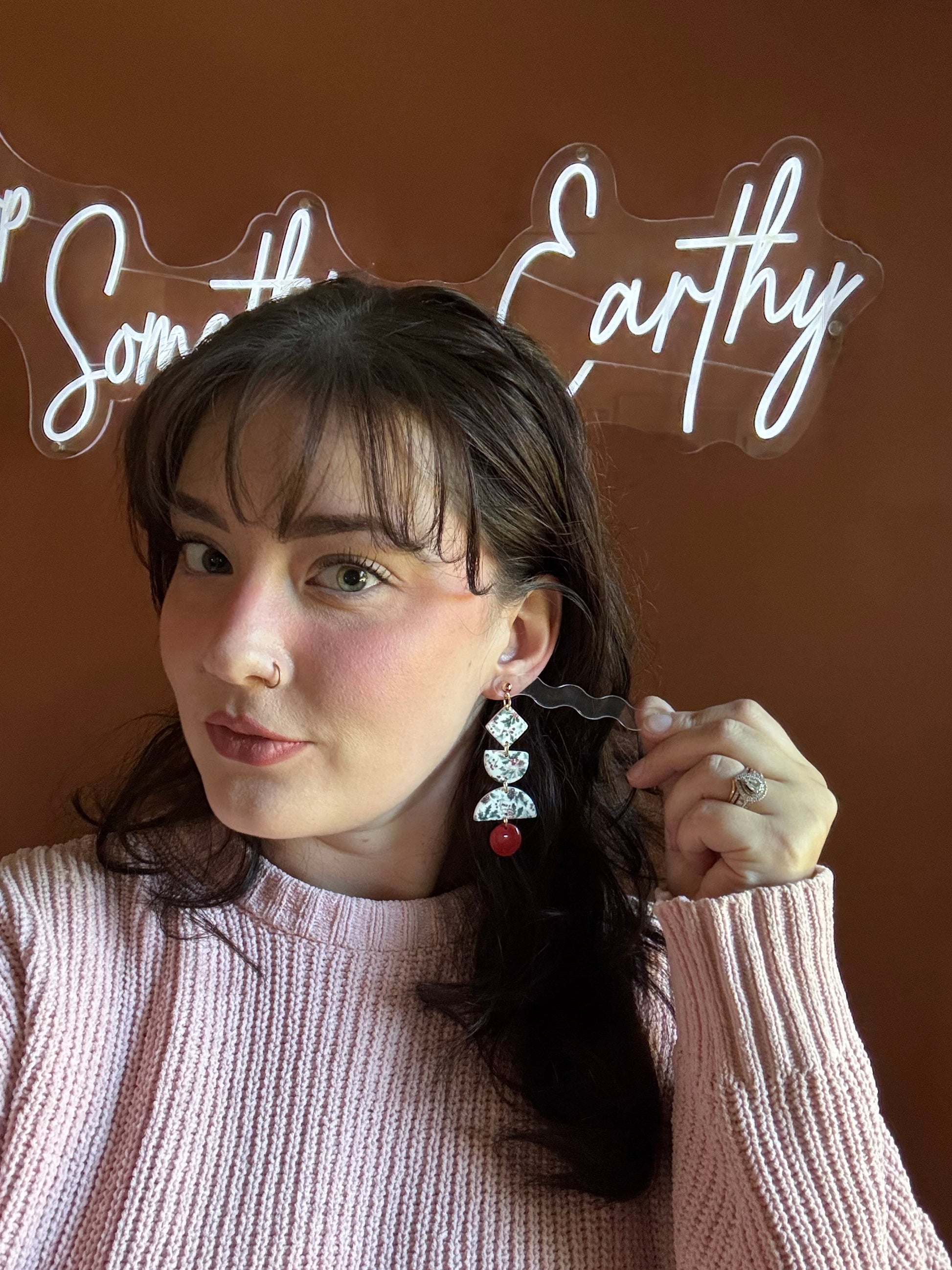 Earrings are made of polymer clay and hardware is 14k gold plated - nickel free. Each piece is rolled, cut, baked, sanded and assembled by hand, so sizes and custom-mixed colors will vary per piece. Due to the handmade nature of my pieces, slight imperfections are inevitable. Every piece is truly one of a kind.