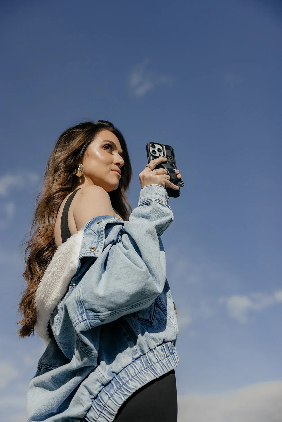 Case Design: Black and grey checkerFinger Strap Color: Solid black